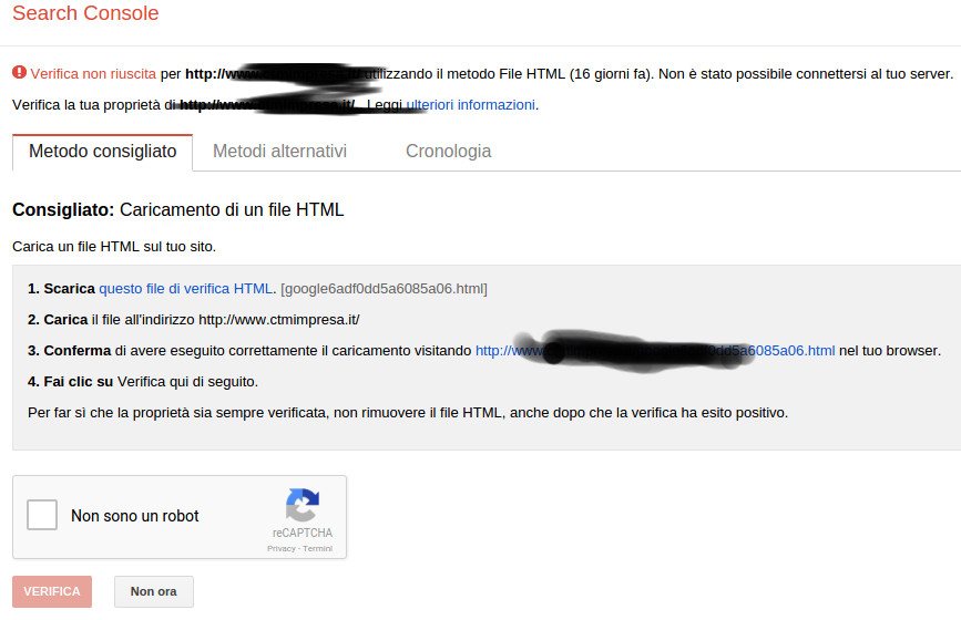 Ora devo dire a google di controllare e riaccreditarmi sui motori di ricerca.
