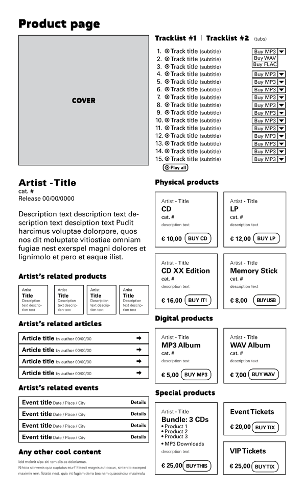 • Lista delle soluzioni di acquisto disponibili per quell'album, compresi prodotti fisici, download, fisico+download, bundle di prodotti etc.